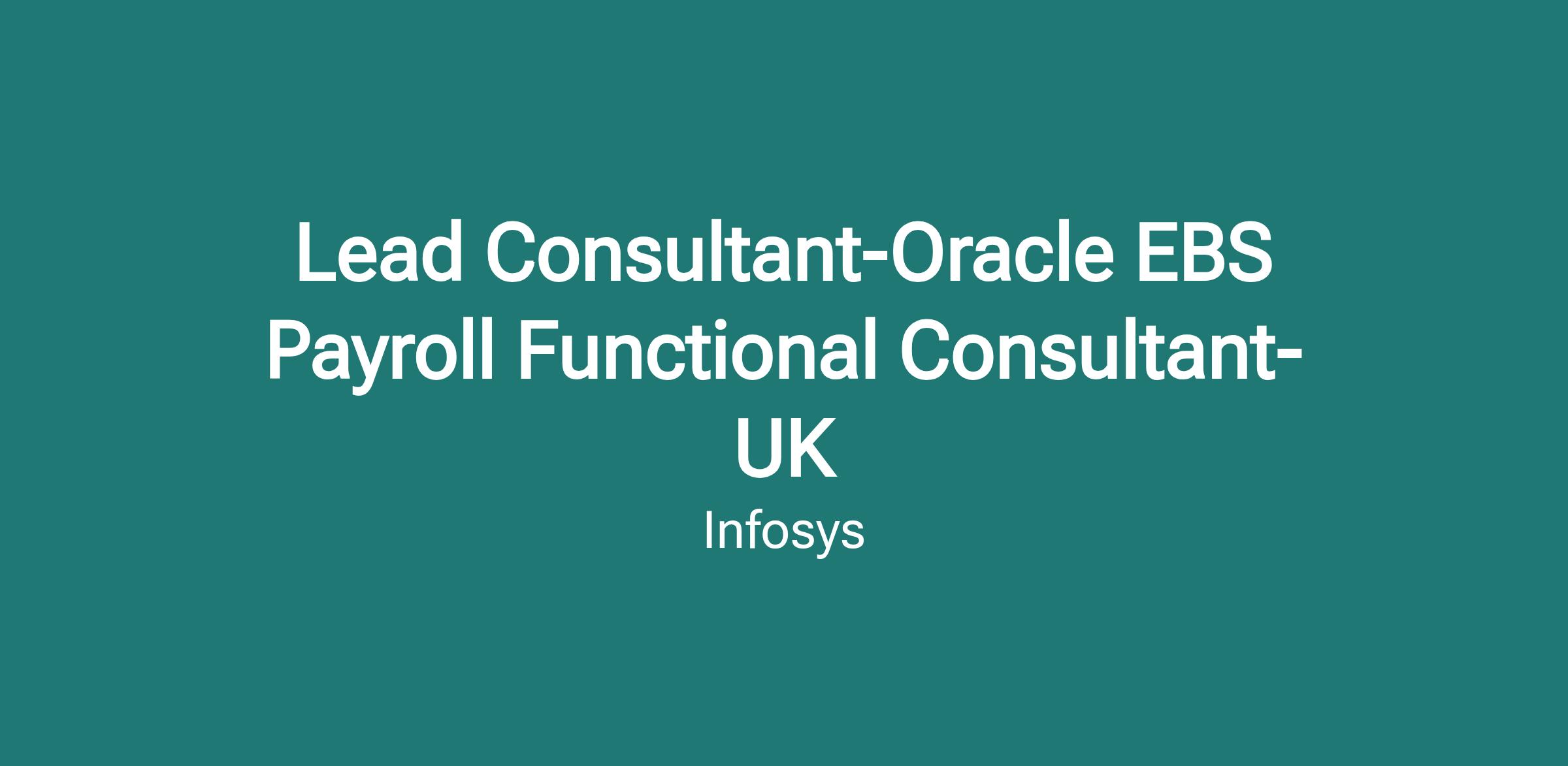 Lead Consultant-Oracle EBS Payroll Functional Consultant-UK