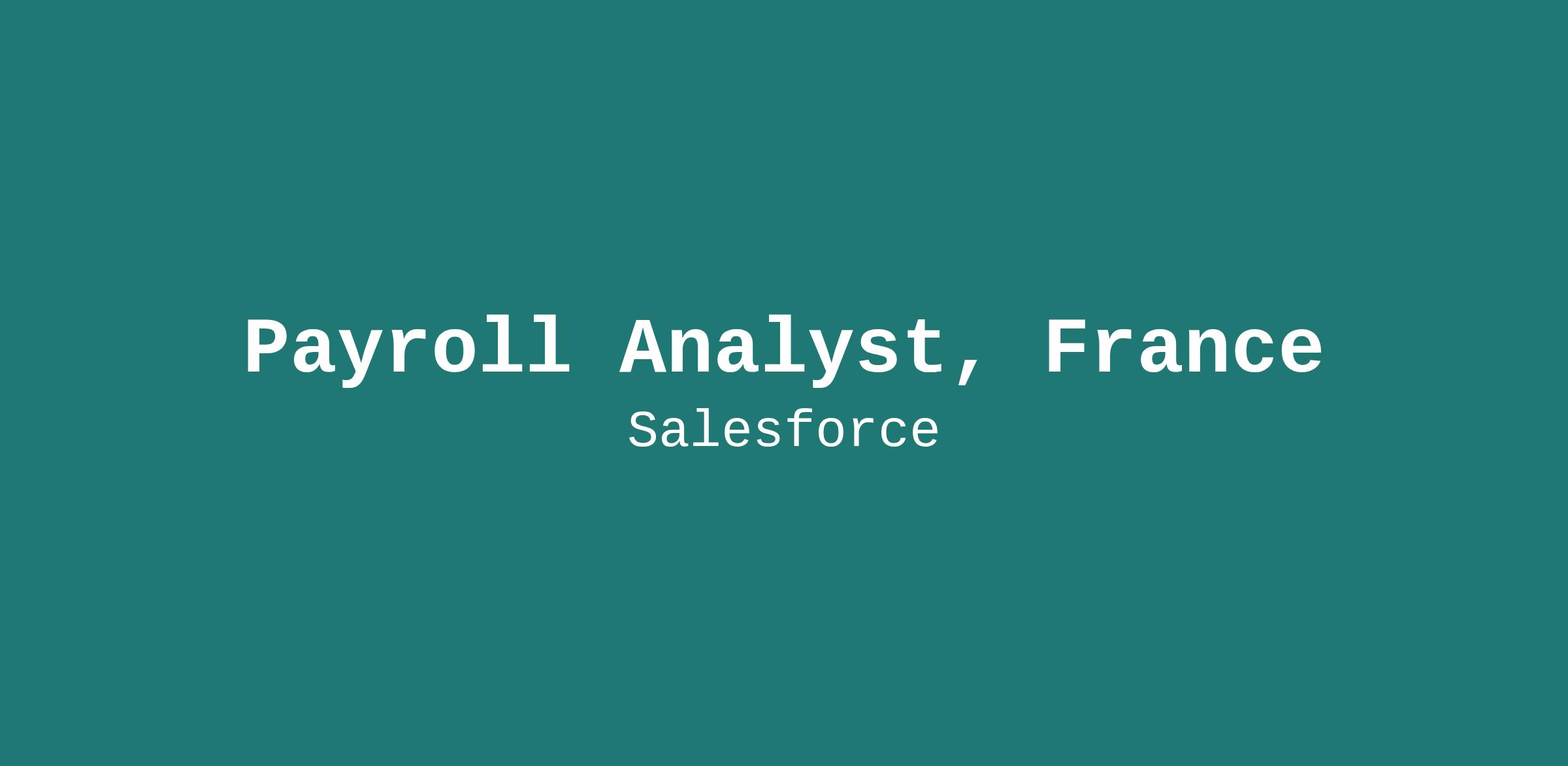 Salesforce is currently seeking a Payroll Analyst to join our well established EMEA Payroll team and to support our continuous company growth. This individual will be responsible for processing our payroll in France, as well as taking part in exciting projects which require cross-functional collaboration with external and internal partners.