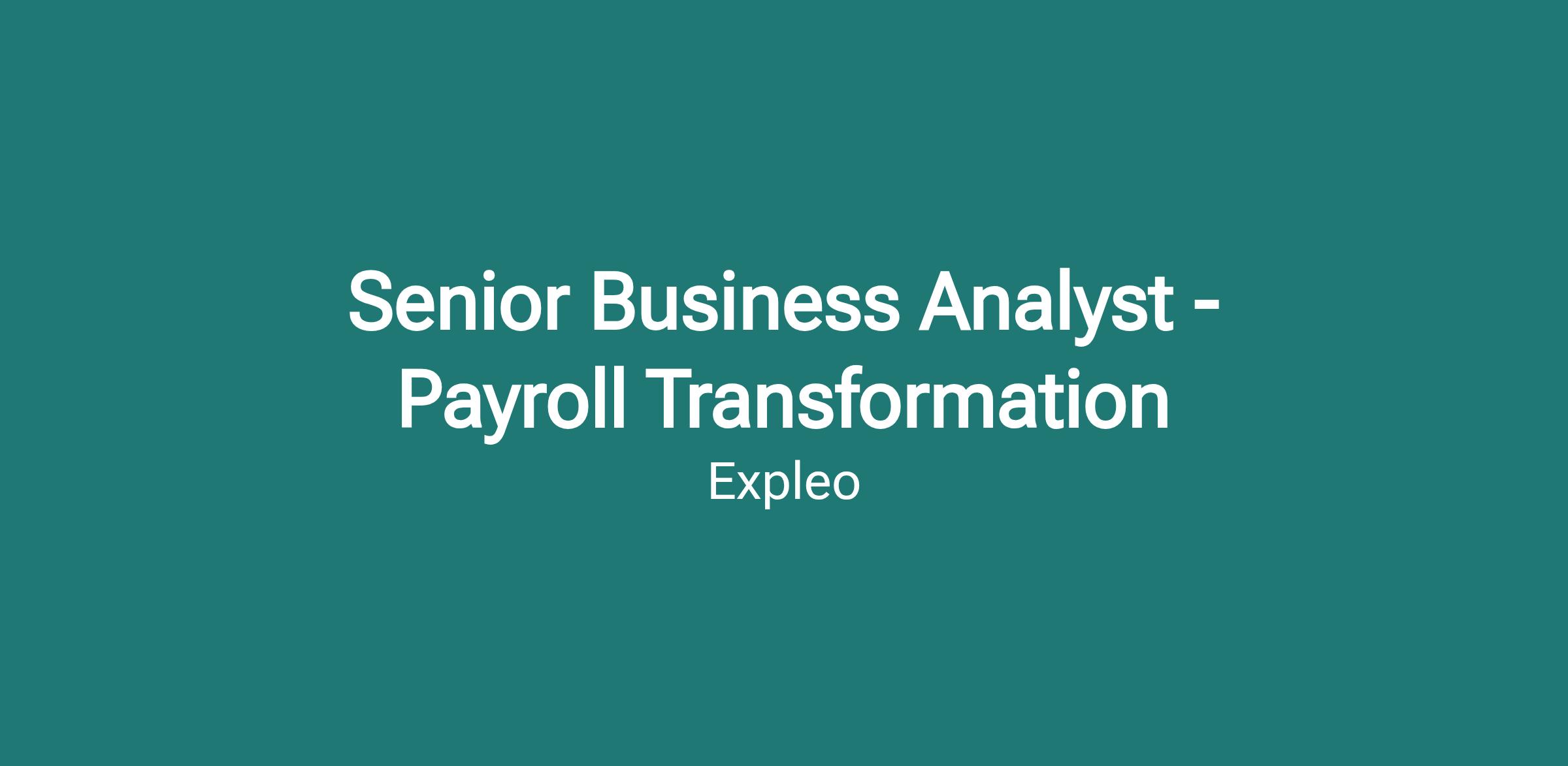Expleo is recruiting a Senior Business Analyst to support a major Payroll Transformation programme. This role is suited to someone with direct experience capturing and defining payroll requirements and supporting the implementation of a new payroll platform alongside a new payroll provider.