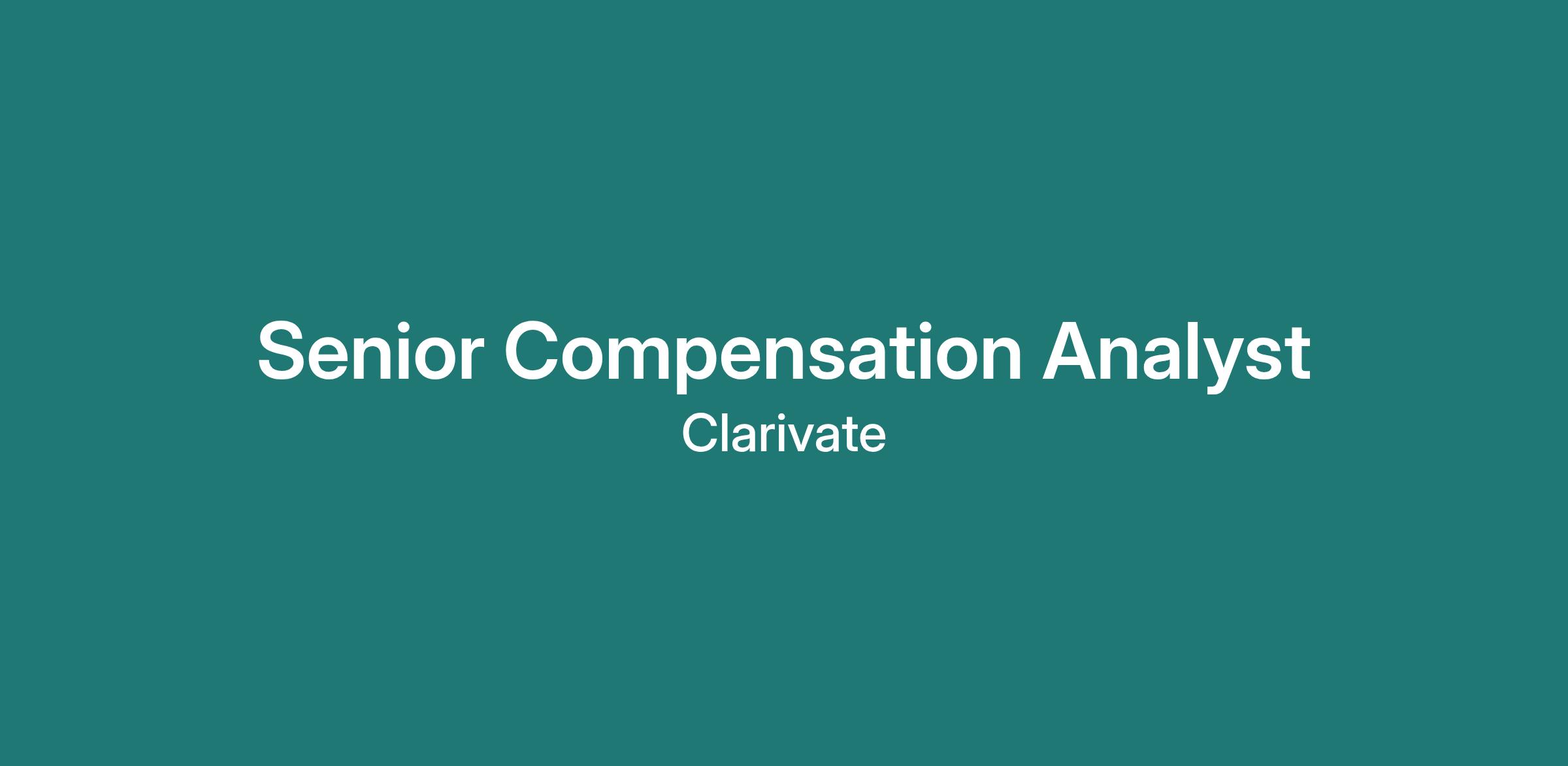 Clarivate is currently seeking a Senior Compensation Analyst to join our growing, global compensation team! Partnering with team members, you will be responsible for consulting with business and HR teams on compensation programs, market insights and pay practices. As a true champion within the group, you will be highly organized, personable, and exceptionally resourceful. As a motivated performer, you will have a strong sense of accountability, ability to work as part of a fast-moving team, and an ongoing commitment to and investment in our mission. Collaborating with HR Business Partners, you will support effective compensation programming that supports business needs and build relationships, both peer-to-peer and with key stakeholders. stakeholders.